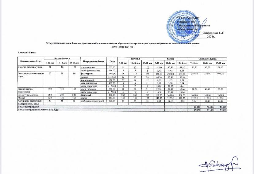 Ас мәзірі 1апта 5күн, 12.01.2024