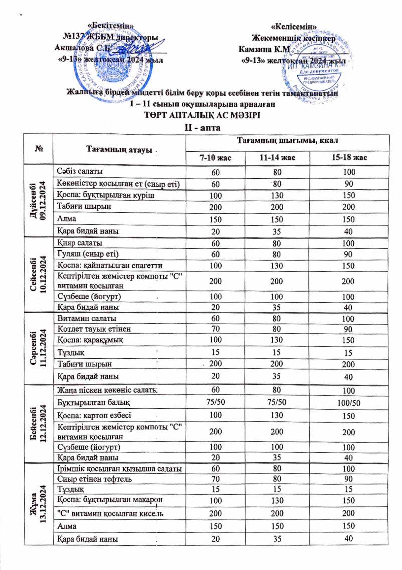 09 желтоқсан 2024 0 1 2 3 4 5 2024 жылғы 9-13 желтоқсан аралығындағы ас мәзірі. Осы беттің QR-коды:QR-код этой страницы: