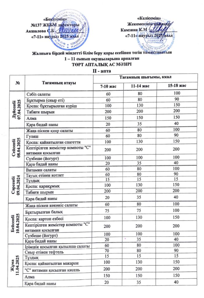 07 сәуір 2025 0 1 2 3 4 5 2025 жылғы 7-11 сәуір аралығындағы ас мәзірі. Осы беттің QR-коды:QR-код этой страницы: