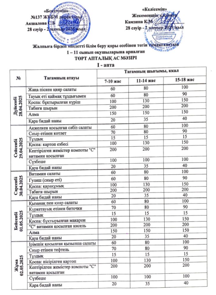 02 мамыр 2025 0 1 2 3 4 5 2025 жылғы 28 сәуір 2 мамыр аралығындағы ас мәзірі. Осы беттің QR-коды:QR-код этой страницы: