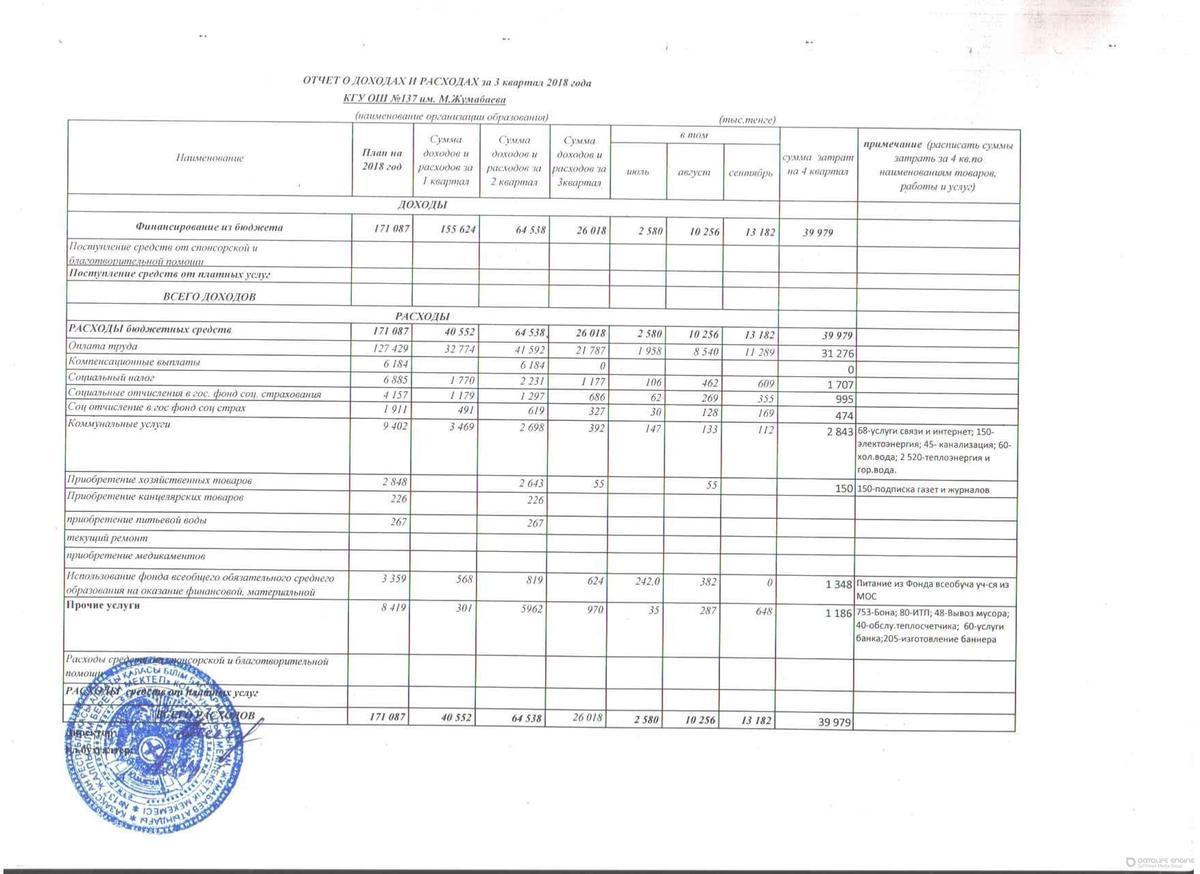 » » » Отчет о доходах и расходах за 3 квартал 2018 года