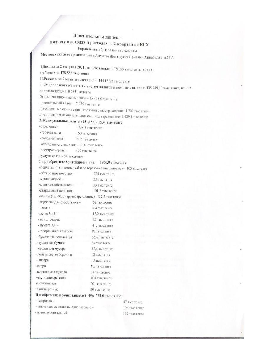Отчет о доходах и расходах на 2 квартал 2021 г