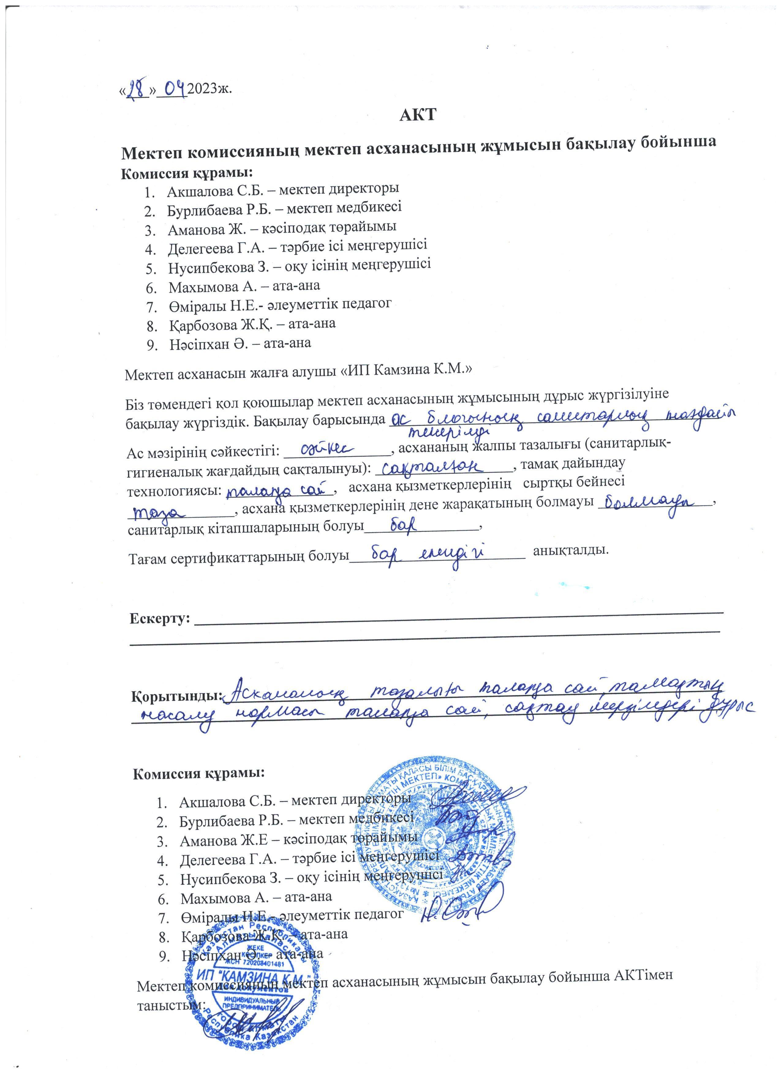 Асхана жұмысы қорытынды АКТ-і